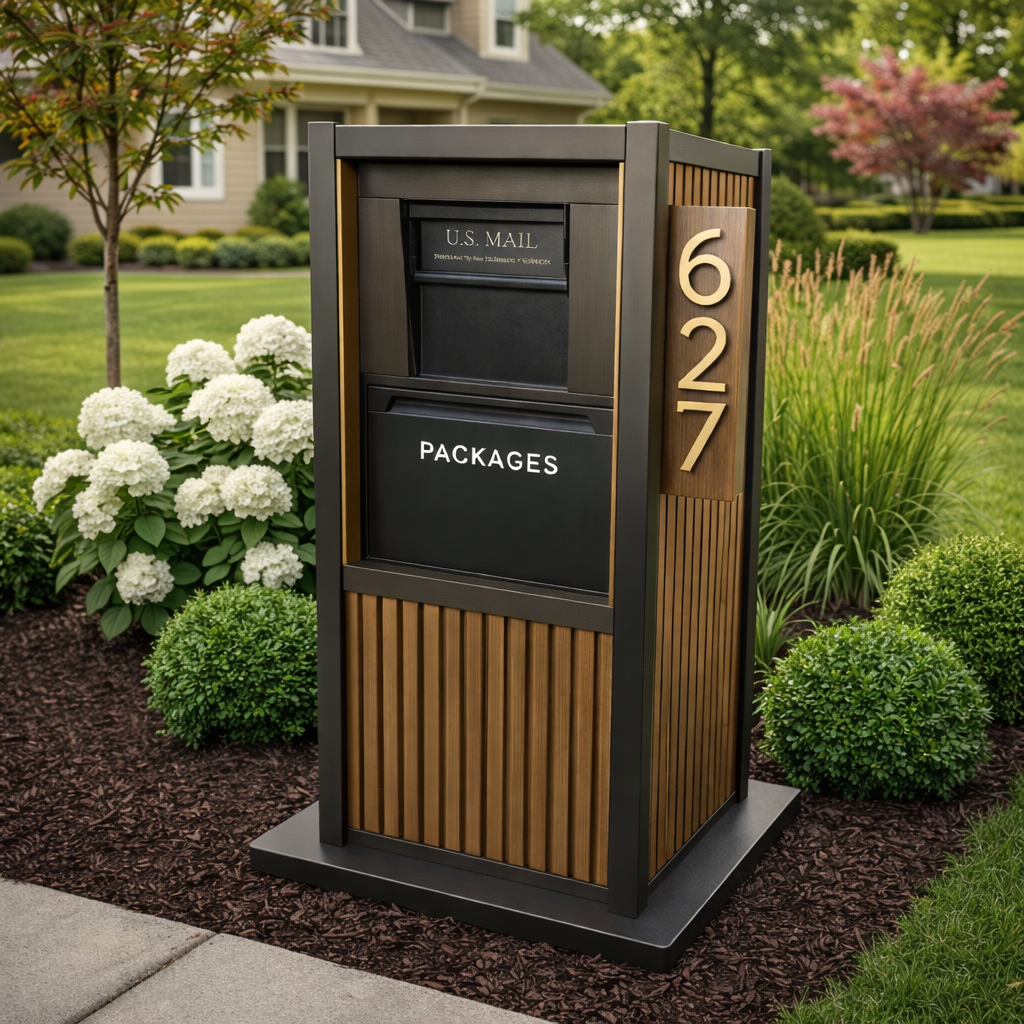 Our most premium mailbox systems feature modern architectural designs, integrated package delivery vaults, and custom house numbers. Built to handle daily deliveries while giving your home a dramatic curb appeal upgrade.